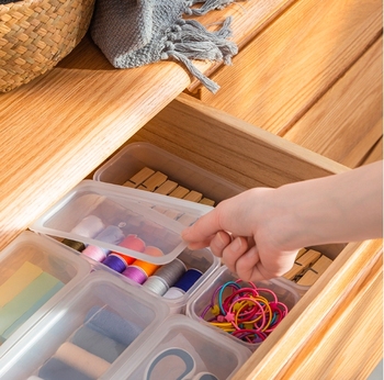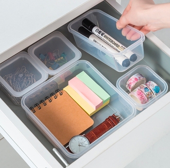 Household Cosmetic Separated Storage Box Tableware Transparent Matte Desktop File Transparent Storage Box Container