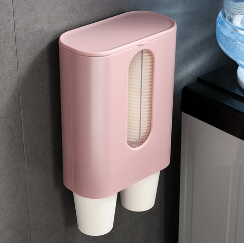 Punch-free Paper Cup Dispenser Double-tube Taker Water Holder Dust-proof Wall-mounted Water Cup Storage Rack
